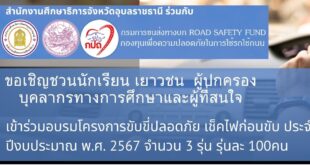 Read More »ขอเชิญชวนเข้าร่วมการอบรมโครงการขับขี่ปลอดภัย เช็คไฟก่อนขับ ประจำปีงบประมาณ 2567